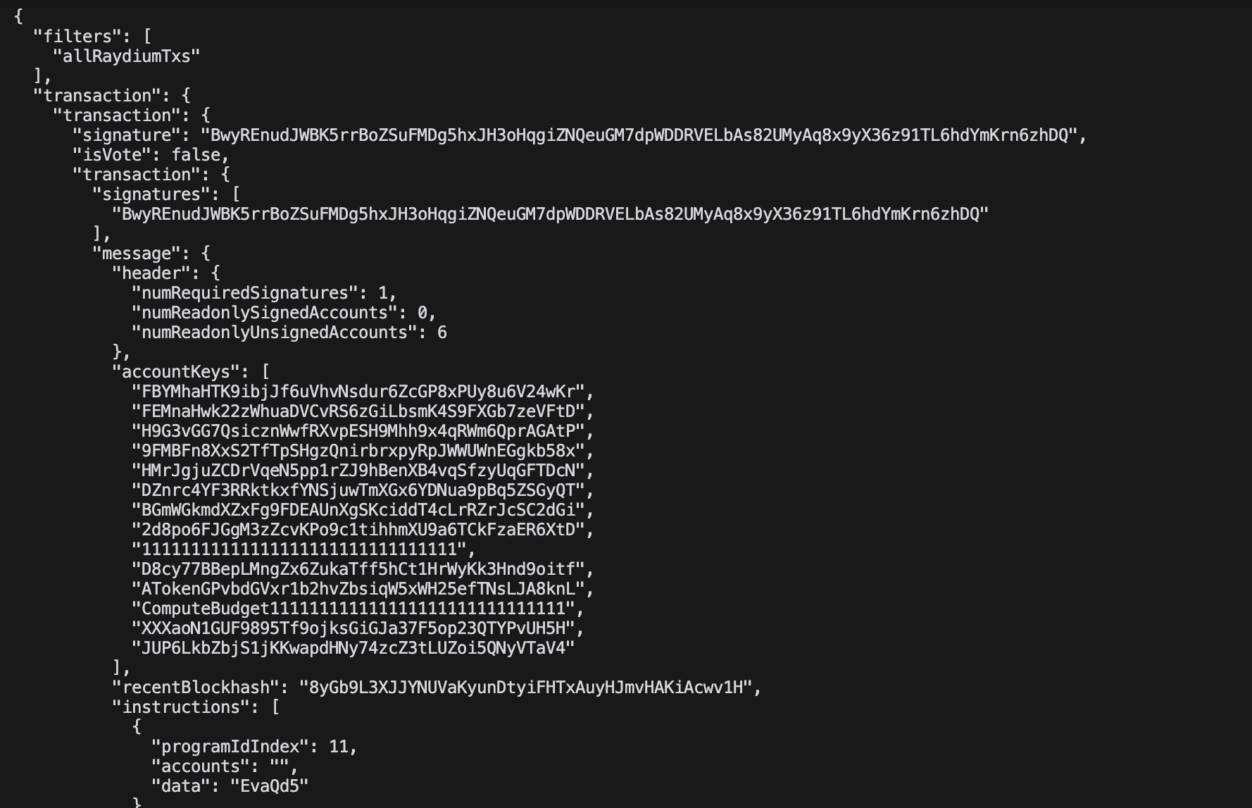 Example output of a partial Raydium transaction